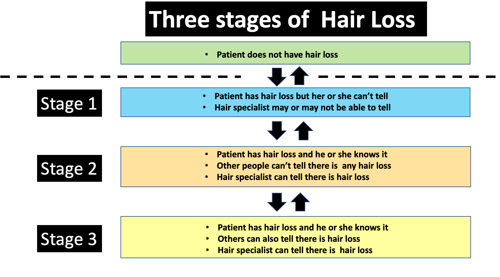 Stage 3 Hair Loss - Female Pattern Baldness Symptoms Causes Treatment And Prevention Ahs India. For people with stage 3 kidney failure, hair loss problem may occur due to the following several factors: There is a lack of bilateral recessions along the anterior border of the hairline in the frontoparietal regions. Each step marks the severity and pattern of hair loss. How long does the telogen stage last? In the regular norwood pattern, two areas of hair loss gradually enlarge to produce recession at the temples and thinning in the crown.